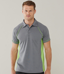100% polyester Coolplus® piqué. Coolplus® modified polyester fibre draws moisture away from skin to keep you cool and dry. Self fabric collar. Two self colour button placket. Contrast piping on raglan seams, sides and cuffs. Side vents. Twin needle hem. 60°C wash.